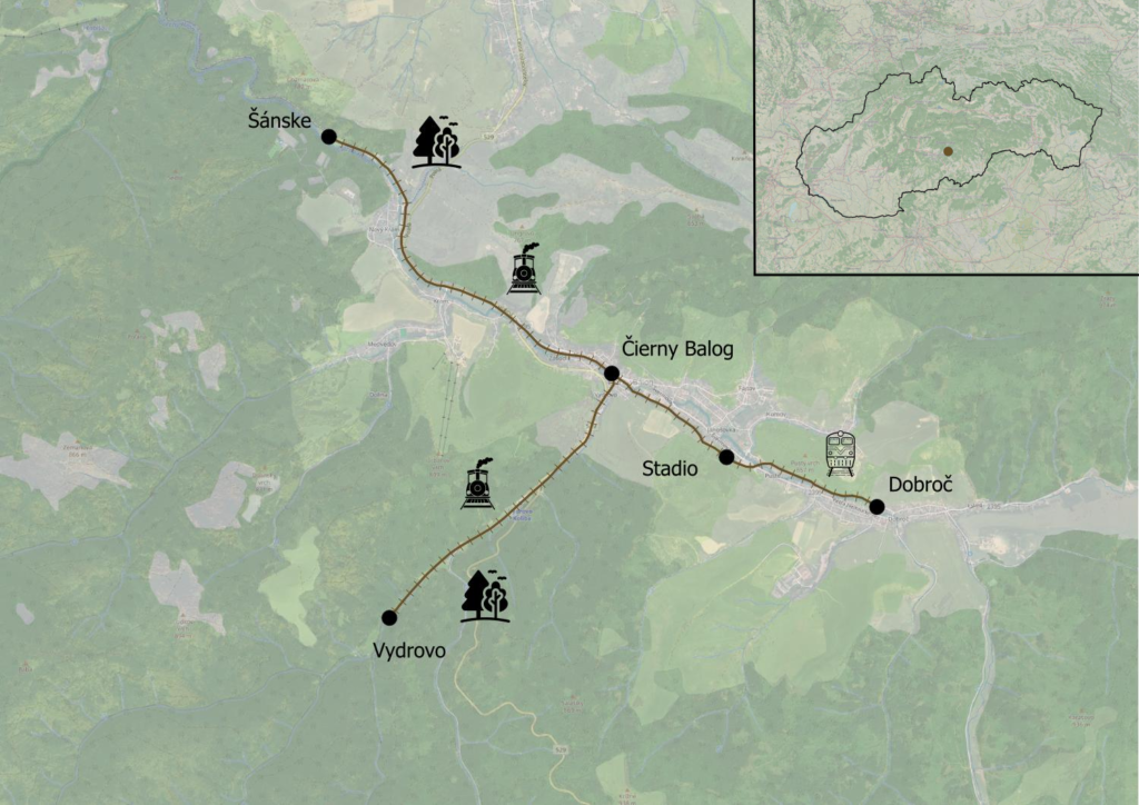 Tratta: Da Čierny Balog a Dobroč, Vydrovo e Šánske, Slovacchia. Servizio fino a Chvatimech solo in occasioni speciali.